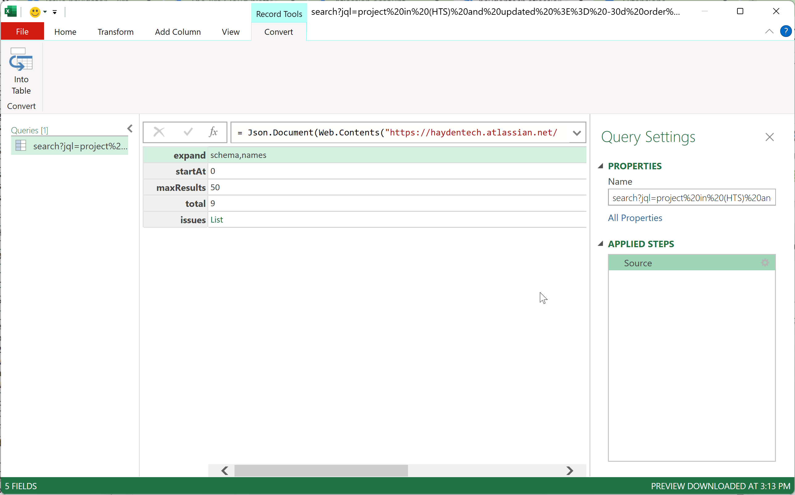 Once you are successfully authenticated… the JSON data will be interpreted by Microsoft Power Query and allow you to make selections (or use M Query in advanced editor)