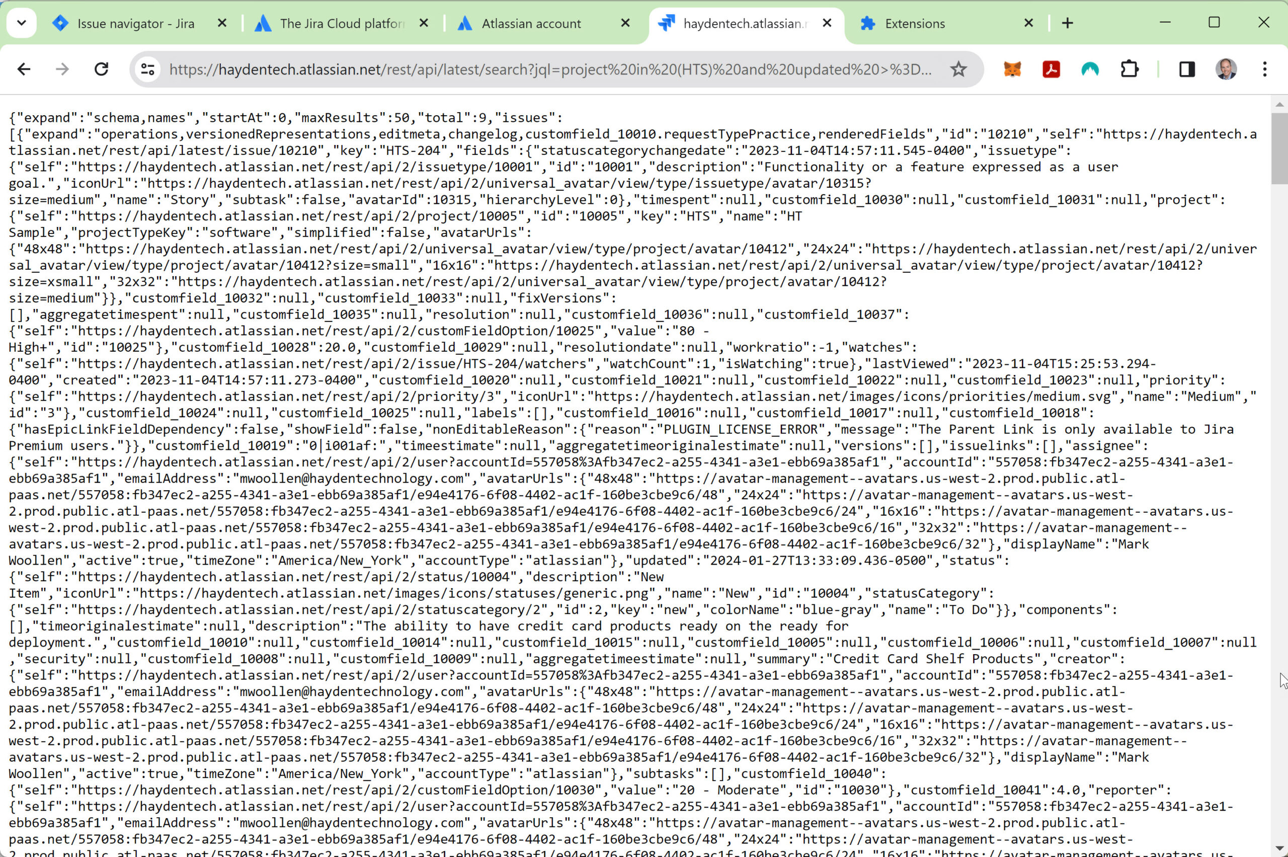 Putting it all together… [Jira Base URL] + [REST API] + “?” + [JQL Query] and paste into a browser window… you get a bunch of data in JSON format. JavaScript Object Notation (JSON), is an open data interchange format that is both human and machine-readable.