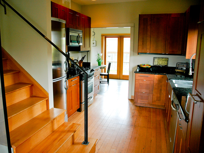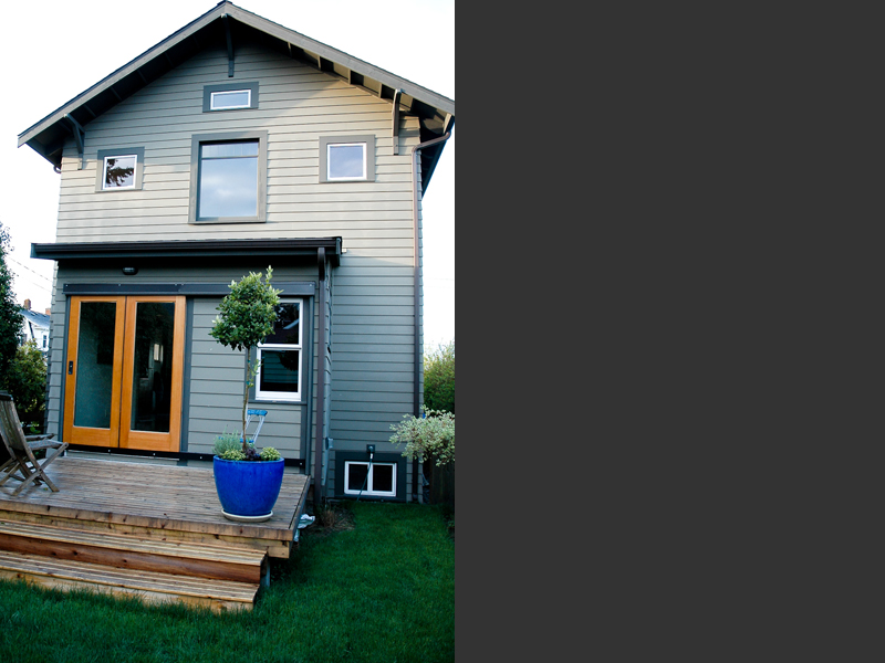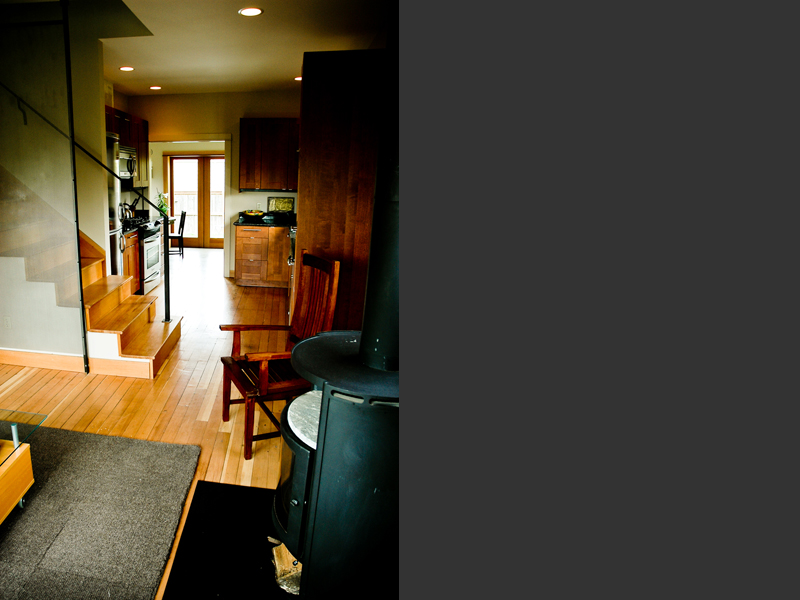 Seattle, Washington Located in the Phinney Ridge Neighborhood of Seattle, this second story addition fits within the neighborhood, but uses contemporary detailing and sustainable ideas throughout it's execution. Revealing the fir floors of the original 1908 house, the entire first floor has been opened up to make a small house feel large. A large sliding door opens up the back yard to the dining room, giving a strong connection to the outdoors on a small lot. Sustainable ideas are carried throughout the house, resulting in reduced heating bills despite the expanded square footage. Bamboo floors, high efficiency furnace, Paperstone countertops, dual flush toilets, cisterns, high efficiency windows, and dimmable light fixtures are some of the Green ideas used throughout the house to reduce the carbon footprint for urban dwelling. :End